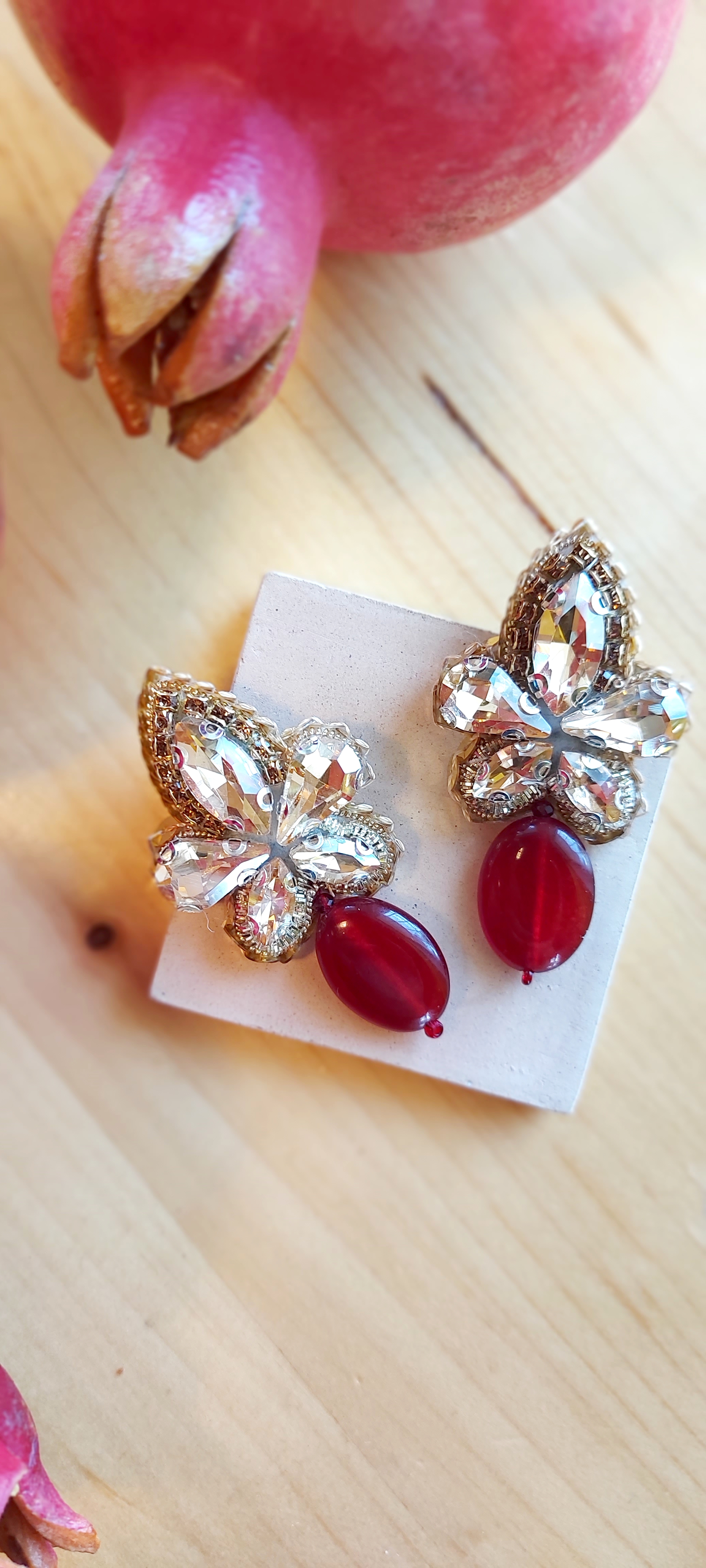 گوشواره جواهردوزی با سنگ لعل