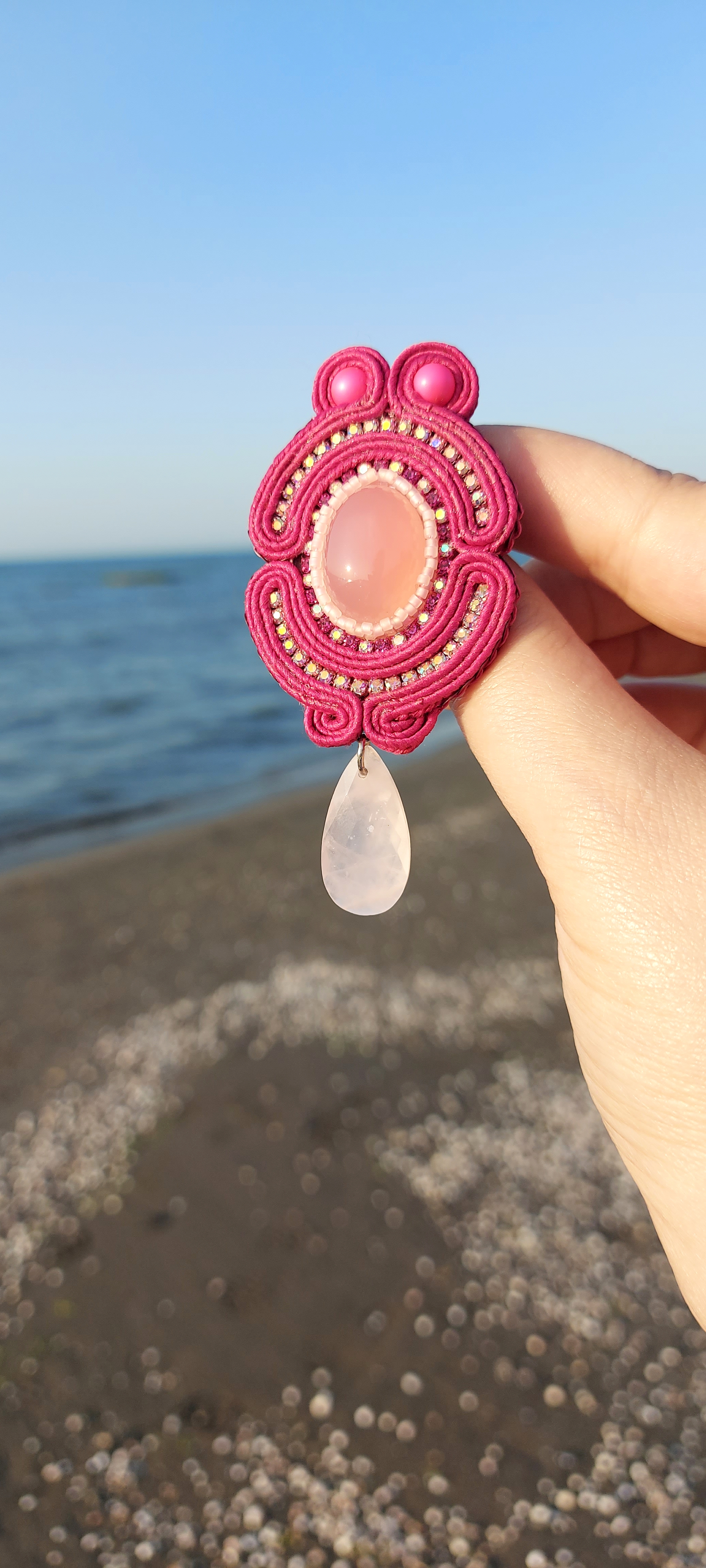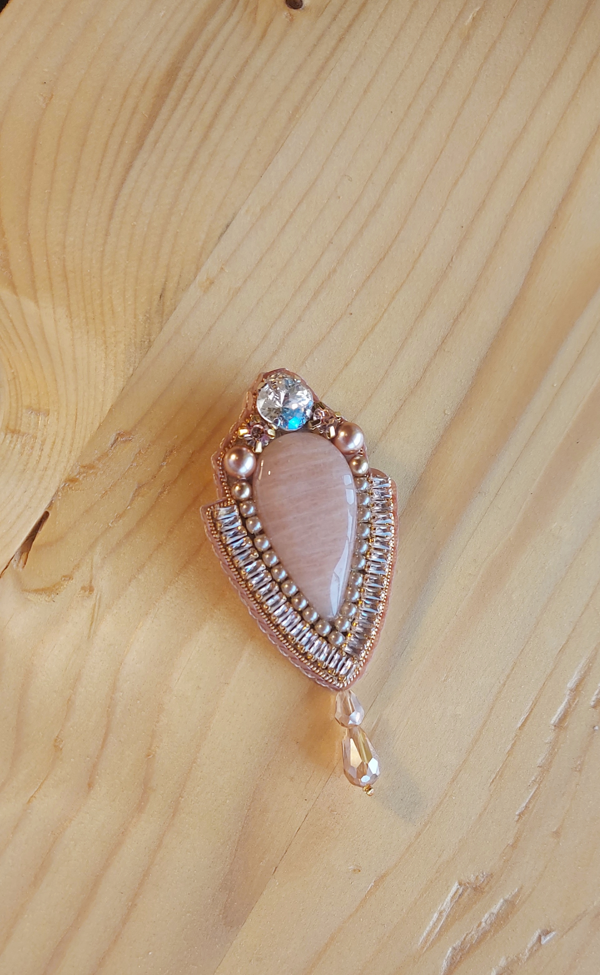 گوشواره جواهردوزی با آویز سنگ طبیعی