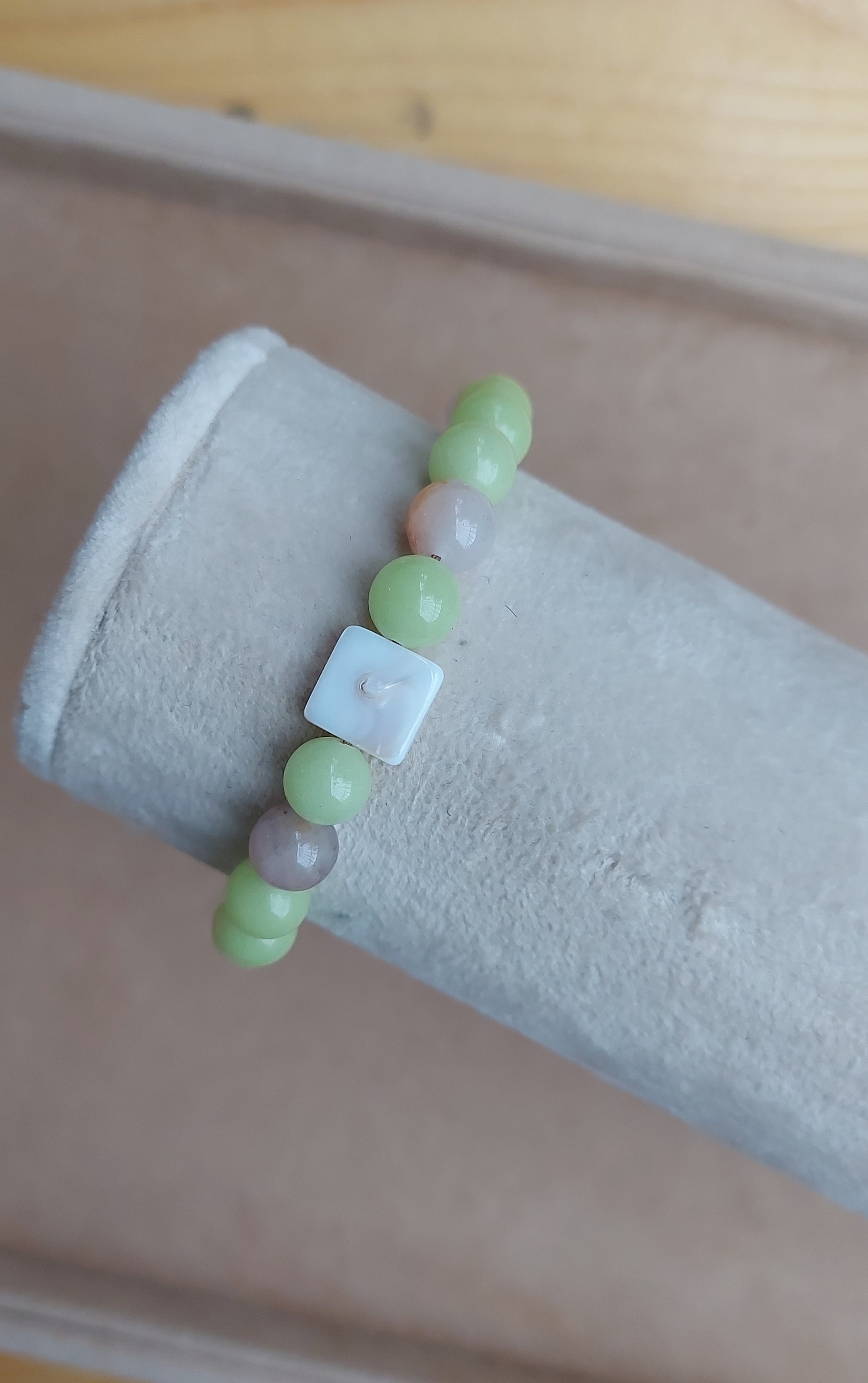 دستبند سنگ جید سبز پاستلی روشن