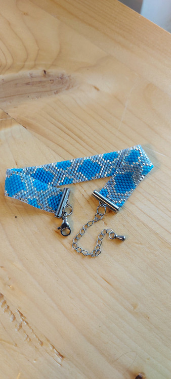 دستبند منجوقبافی پوست ماری با منجوق دلیکای میوکی، قفل طوطی، یراق استیل رنگ ثابت