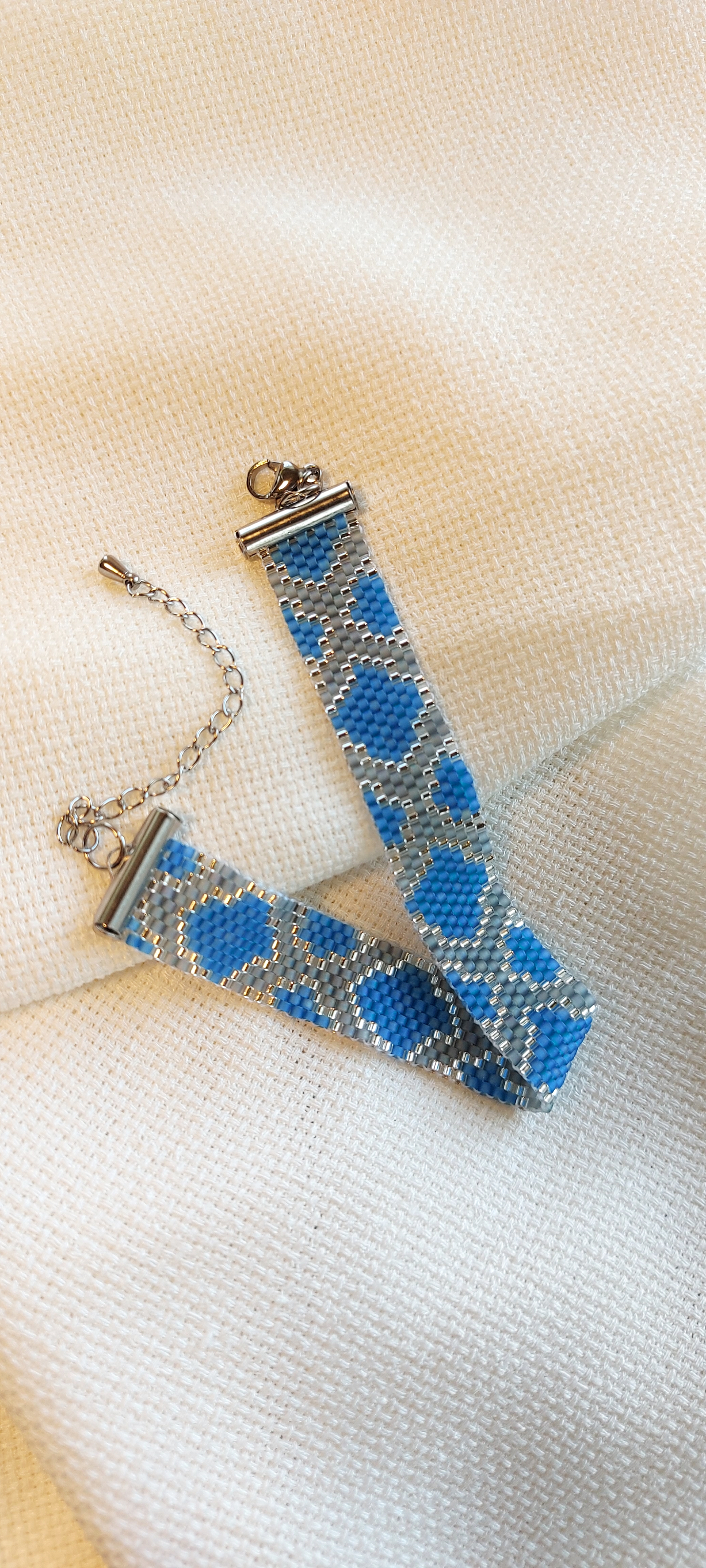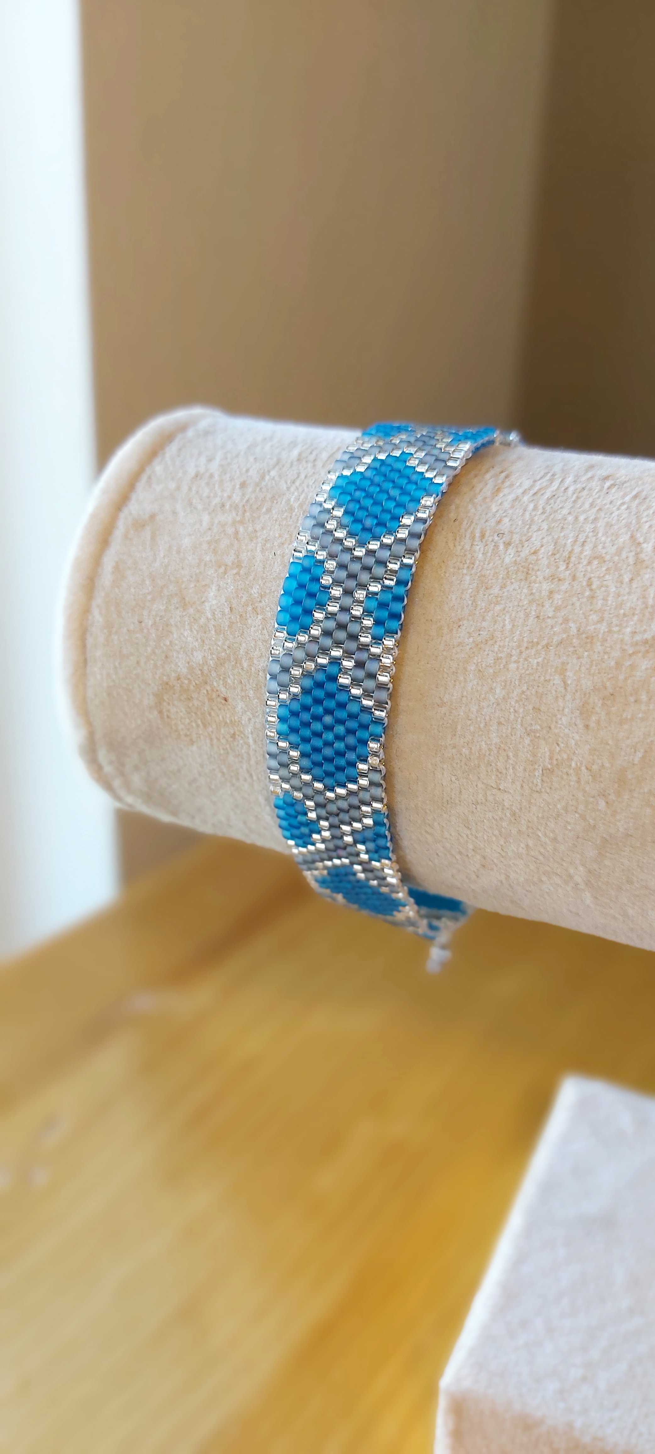 دستبند منجوقبافی پوست ماری با منجوق دلیکای میوکی، قفل طوطی، یراق استیل رنگ ثابت